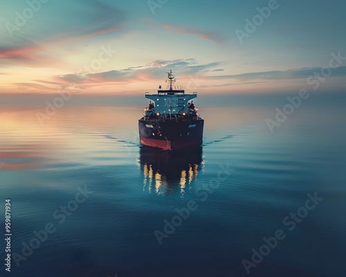 Massive Oil Tanker Vessel Navigating Through Tranquil Dusk Seas