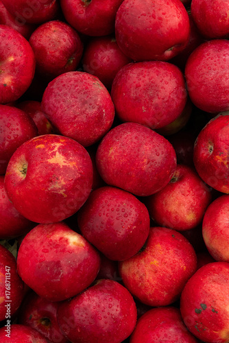 Massive Pile of Freshly Harvested Apples. Abundance of Red Apples in the garden.