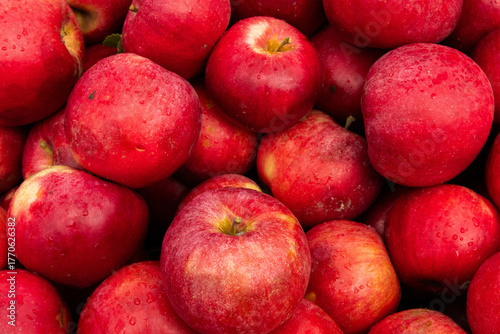 Massive Pile of Freshly Harvested Apples. Abundance of Red Apples in the garden.