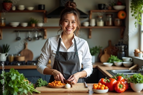 Masterful Chef at Work: Woman Cooking a Delectable Meal in a Rustic Kitchen