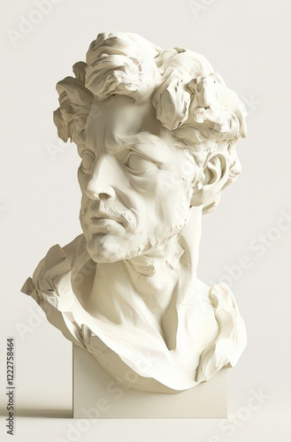 Masterful sculpture of a noble figure with flowing hair and strong features
