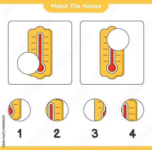 Match the halves. Match halves of Thermometer. Educational children game, printable worksheet, vector illustration