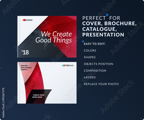 Material design of brochure set, abstract annual report, horizontal cover layout, flyer in A4 with vector colourful layers