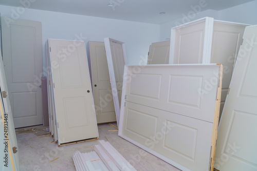 Materials for construction in apartment is under construction, remodeling, renovation, door for a new home before installing
