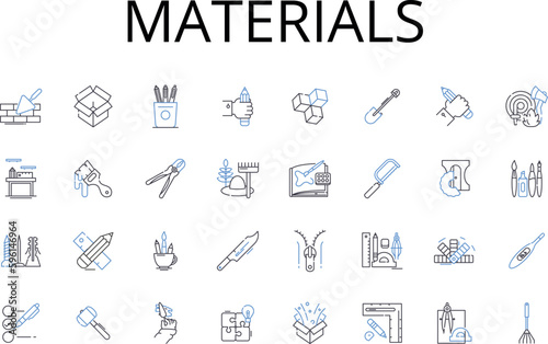 Materials line icons collection. Comestibles, Ingredients, Elements, Compnts, Resources, Substances, Stuff vector and linear illustration. Matter,Goods,Supplies outline signs set