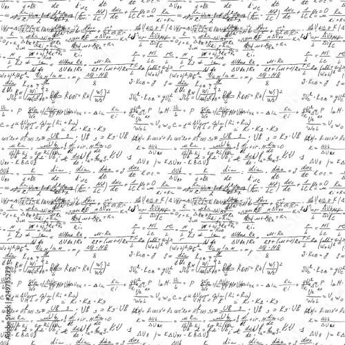 Math seamless board with handwritten mathematical and physics formulas and proves. Vector