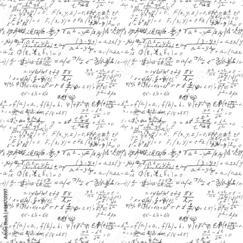 Math seamless board with handwritten mathematical and physics formulas and proves. Vector