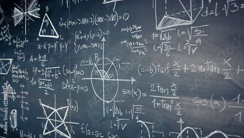 Mathematical formulas and equations chalkboard