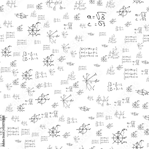 Mathematical, scientific formulas and expressions. Educational, vector seamless pattern. hand-drawn white background.