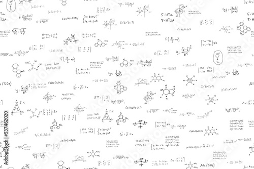 Mathematics, chemistry, physics. hand-drawn. scientific, educational expressions and equations.