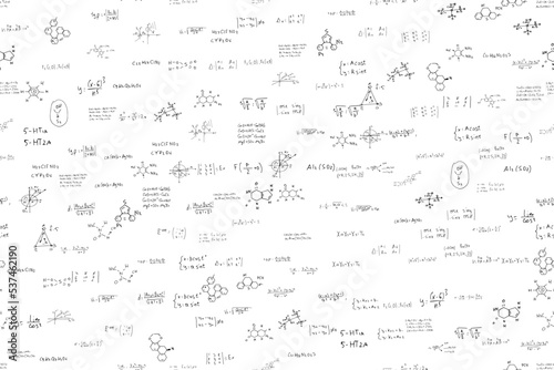 Mathematics, chemistry, physics. hand-drawn. scientific, educational expressions and equations.