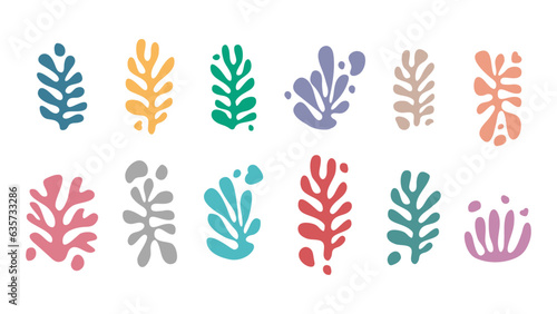 Matisse abstract organic elements. Set of colorful hand drawn various shapes. Doodle isolated objects on white background