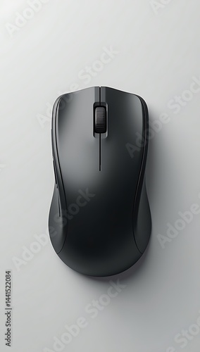 Matte Black Wireless Computer Mouse on Plain Solid Light Gray Background