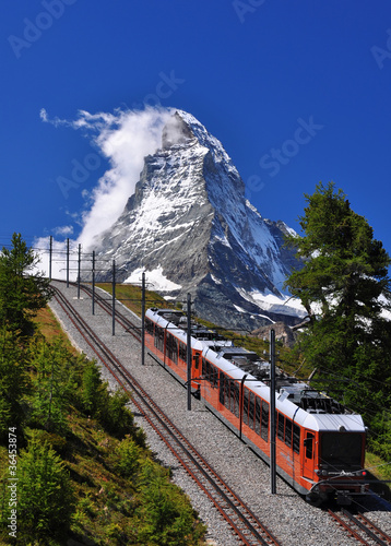 Matterhorn with railroad and train