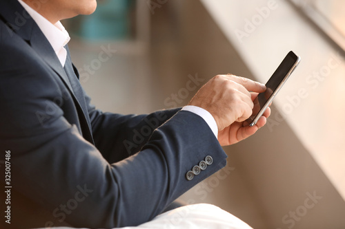 Mature businessman with mobile phone in office