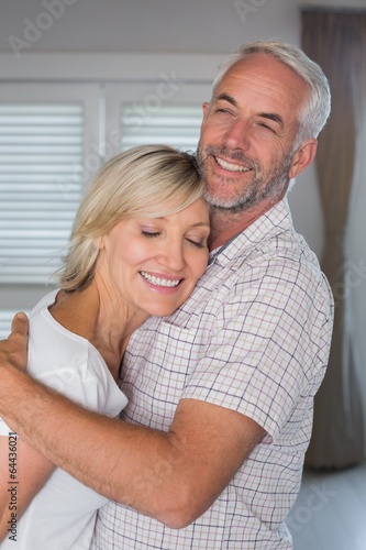Mature couple embracing at home