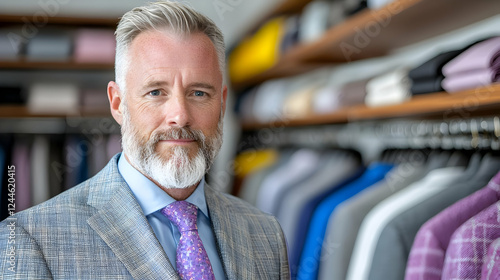 Mature man in suit, boutique background, shopping, fashion