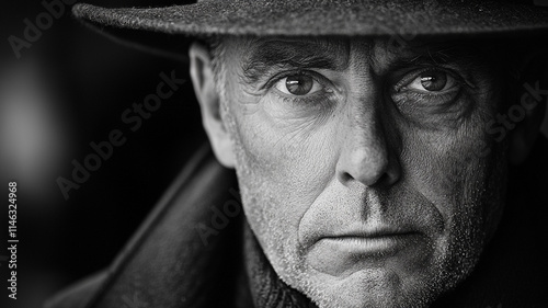 Mature Man Portrait Black and White Close up Serious Expression Hat