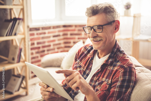 Mature man with gadget