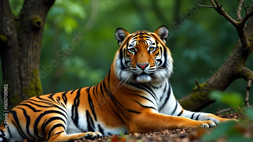 Mature Siberian Tiger Resting in Dense Forest – Powerful Wildlife Portrait in Natural Light