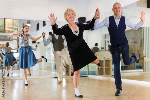 Mature woman dancing swing with young man