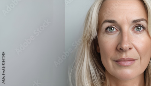 Mature woman face before and after cosmetic procedure. Plastic surgery concept