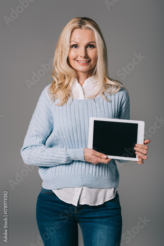 mature woman holding tablet