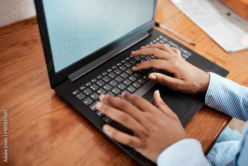 Maximise on productivity with modern technology. Cropped shot of a businesswoman using a laptop at her desk.