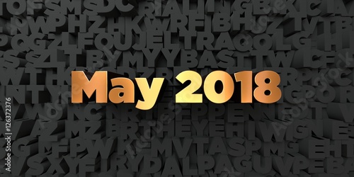 May 2018 - Gold text on black background - 3D rendered royalty free stock picture. This image can be used for an online website banner ad or a print postcard.