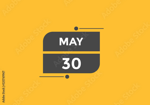 may 30 Calendar icon Design. Calendar Date 30th may. Calendar template