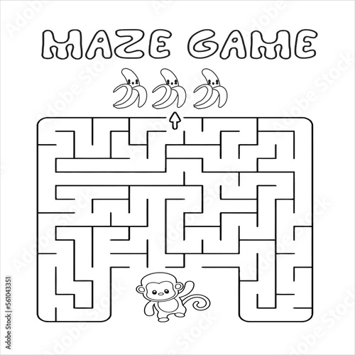 Maze or Labyrinth for Children with cartoon . Find right way to Branch. Answer under the layer. Square puzzle Game. . Education worksheet. Activity page.Logic Game for kids