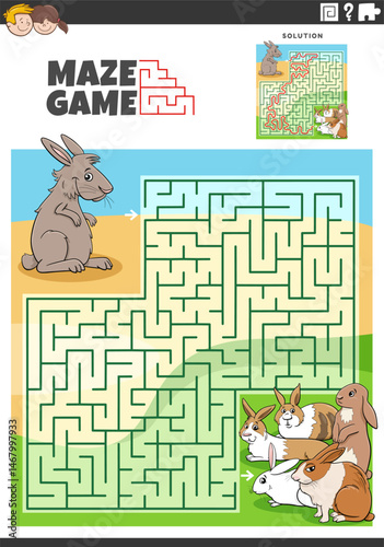 maze puzzle game with cartoon rabbits animal character
