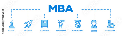 MBA banner web icon illustration concept with icon of career, potential, education, leadership, achievement, degree and management icon live stroke and easy to edit