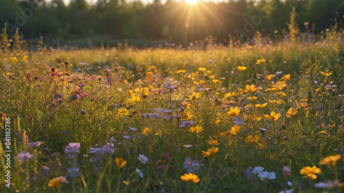 Meadow Magic: Wildflowers Abloom, Golden Hour Glow, Ethereal Beauty, Generative AI
