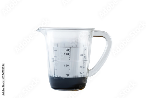 Measuring ingredients in a clear glass cup on a light background during a cooking session isolated on transparent background