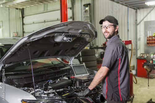 Mechanic working on car in his shop