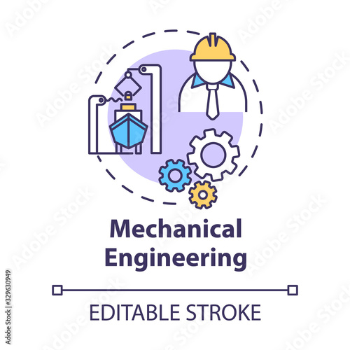 Mechanical engineering concept icon. Nautical industry worker. Ship repair. Marine vessel maintenance idea thin line illustration. Vector isolated outline RGB color drawing. Editable stroke