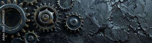 Mechanical gears seamlessly integrated into a textured dark wall, symbolizing industry and machinery