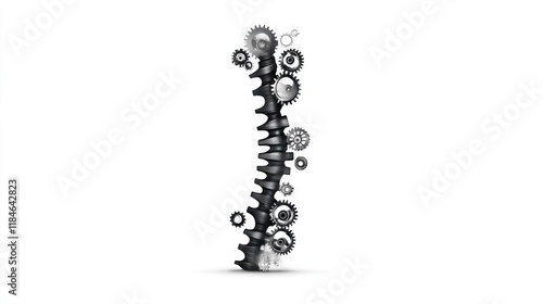 Mechanical spine design industrial workshop digital art abstract environment unique perspective innovation concept