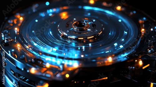 Mechanism of a hard disk drive illuminated by fiber optic lights
