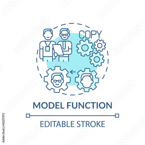 Mechanism of work concept icon. Model function. Experience transfer idea thin line illustration. Business conversation with partner. Vector isolated outline RGB color drawing. Editable stroke