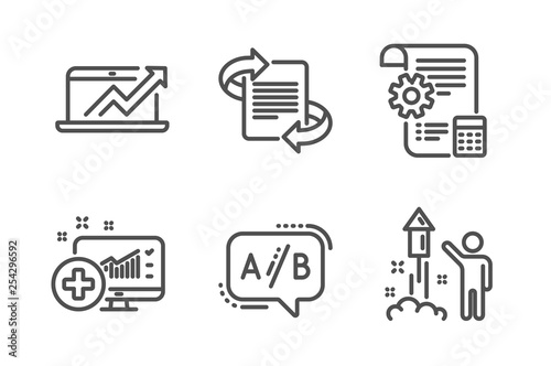 Medical analytics, Settings blueprint and Ab testing icons simple set. Sales diagram, Marketing and Fireworks signs. Medicine system, Report document. Science set. Line medical analytics icon. Vector