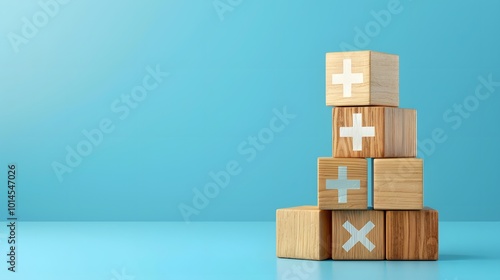 Medical and Healthcare Icons on Wooden Blocks: Visualizing Health Solutions