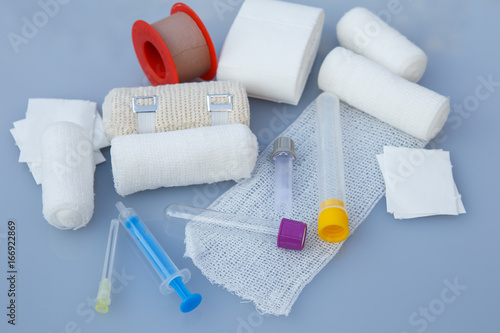 Medical bandages with sticking plaster and syringes for medical,healthcare or pharmacy themes
