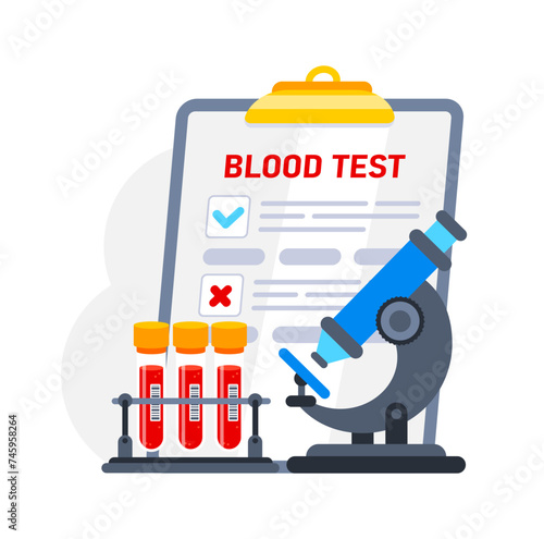 Medical blood test. Blood test laboratory. Laboratory research. Vector illustration