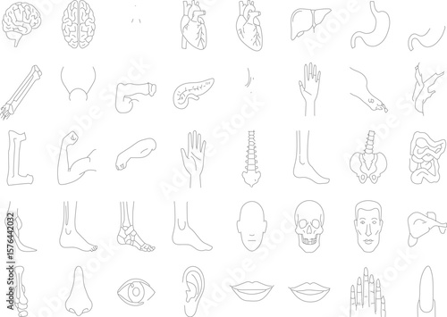 Medical Body Diagram Pack: Organs, Bones & Systems in Line Art Style | EPS + PNG