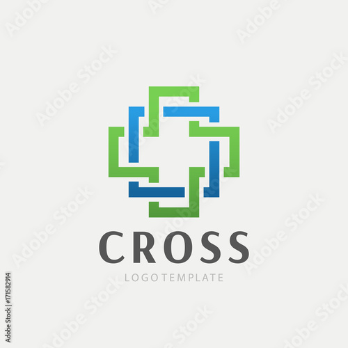 Medical center logo with a cross. Abstract geometric cross symbol. Christian cross icon. Doctor logo help icons business logo