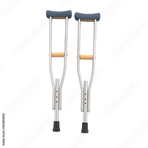 Medical crutches with rubber tips and hand grips, adjustable aluminum frame for mobility assistance and support for individuals with leg injuries or disabilities