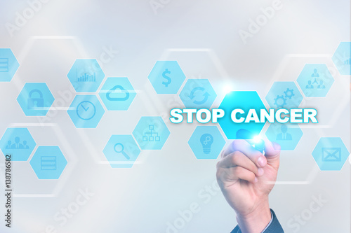 Medical doctor drawing stop cancer on the virtual screen.