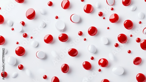 Medical drugs, white tablets and red capsules isolated on background. Vector realistic set of 3d pharmacy remedies, round pills and capsules from different views